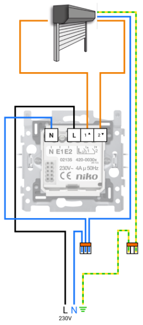 Let op: De schakeling kan er in werkelijkheid anders uitzien dan op de tekening. De draden naar de motor lopen niet altijd naar boven. Ook kunnen de fasedraad en de nulleider een andere kleur hebben. Gebruik daarom een multimeter om het aansluitschema correct in kaart te brengen.