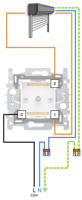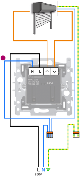Je hebt een extra draad❶ nodig, omdat je de nulleider moet aansluiten op de geconnecteerde motorbediening (je kunt ook doorlussen via de N-klem).