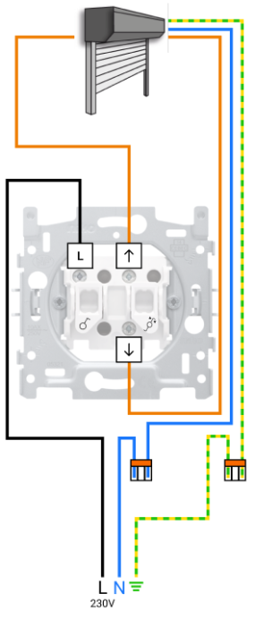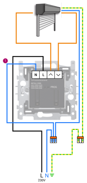 Je hebt een extra draad❶ nodig, omdat je de nulleider moet aansluiten op de geconnecteerde motorbediening (je kunt ook doorlussen via de N-klem).
