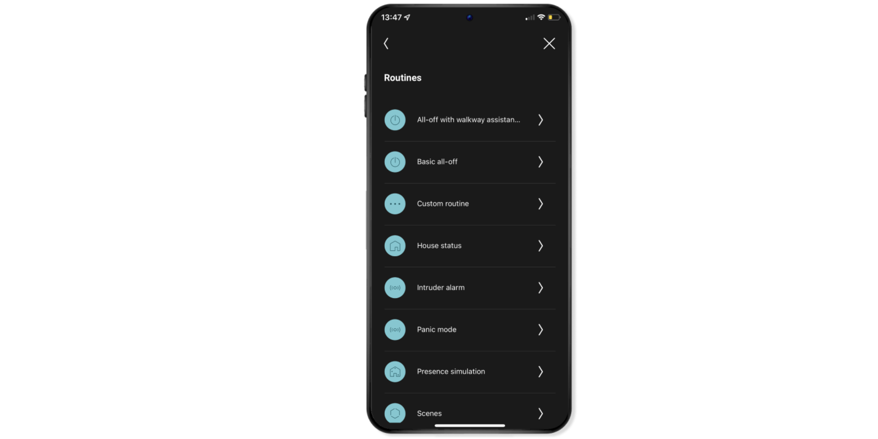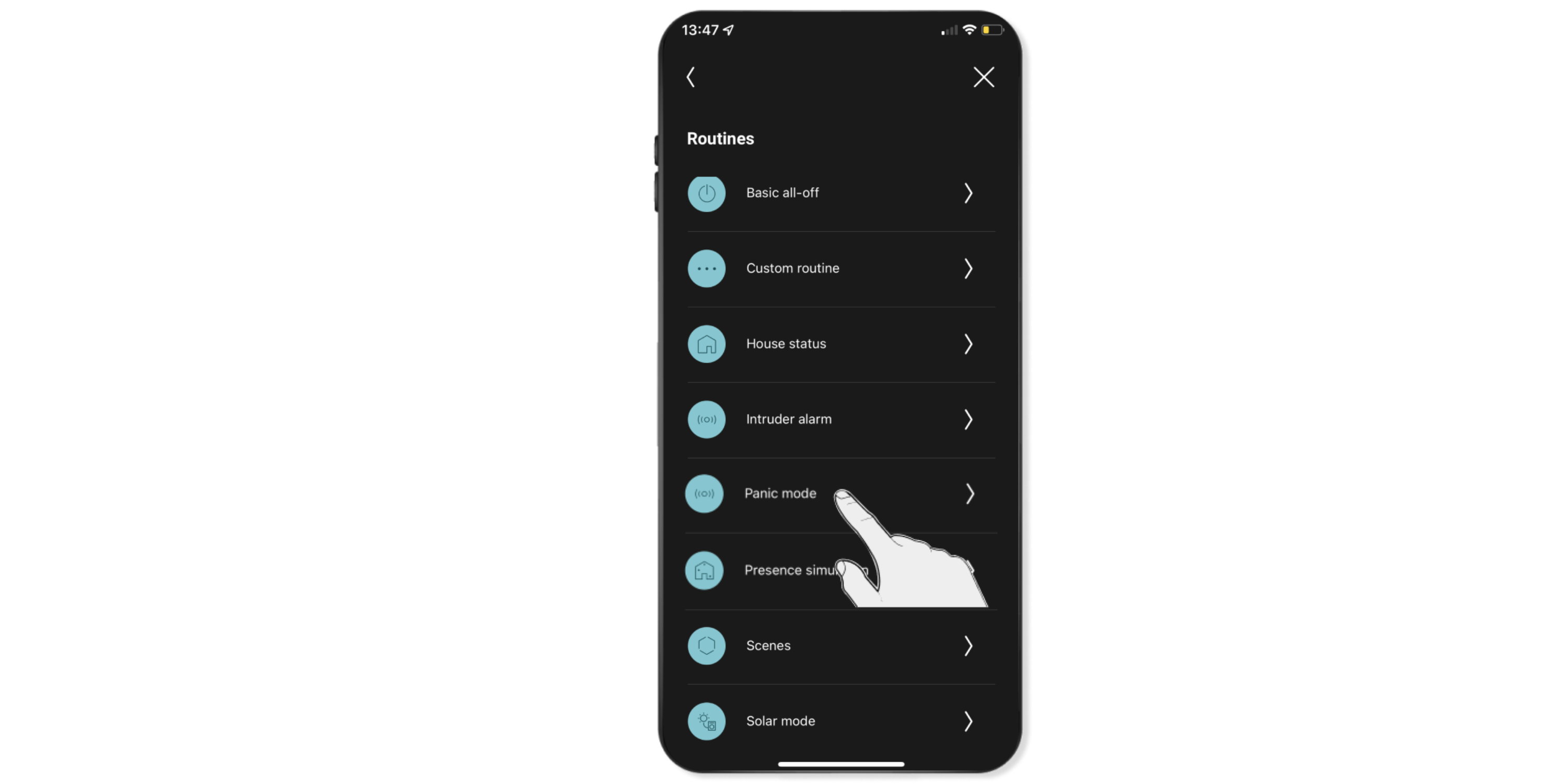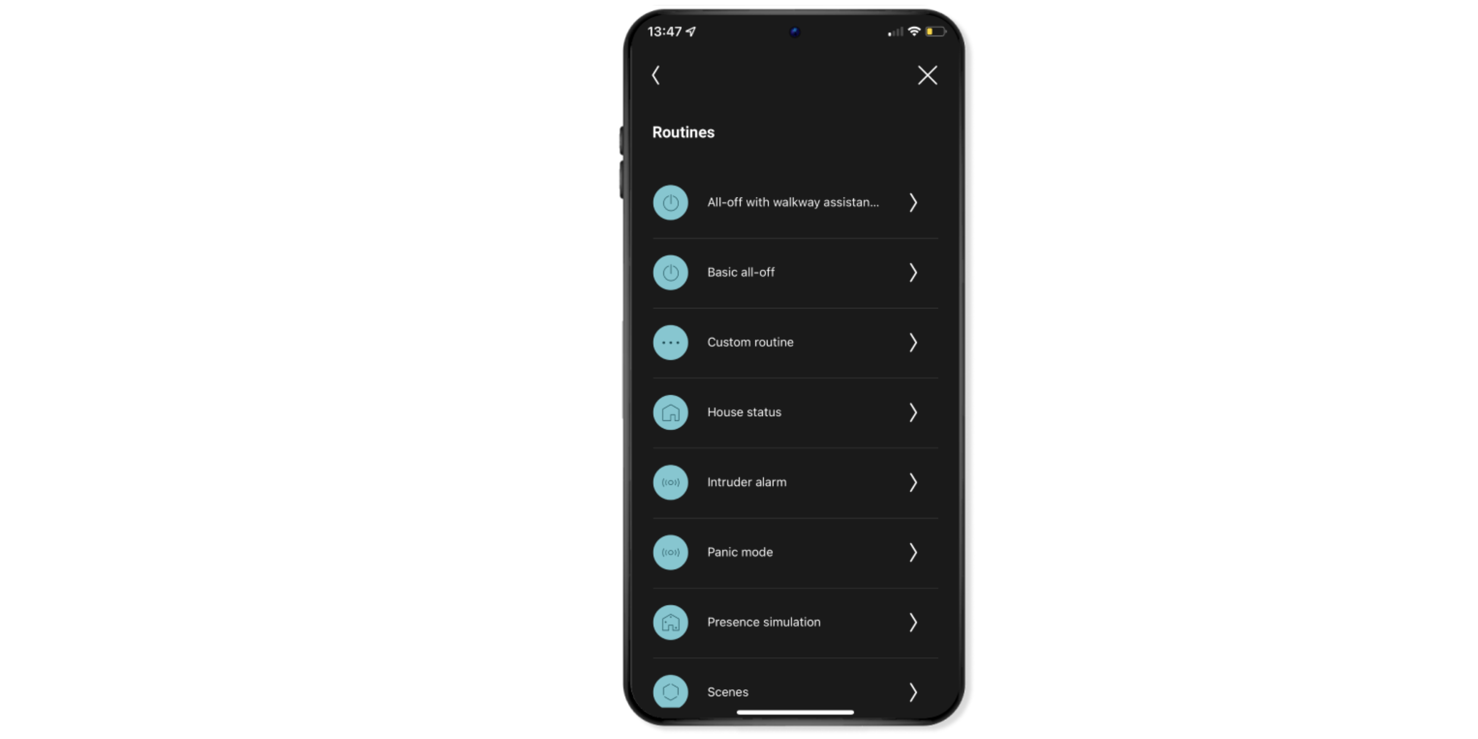 Kies waarschuwingsmodus uit de lijst met routines.