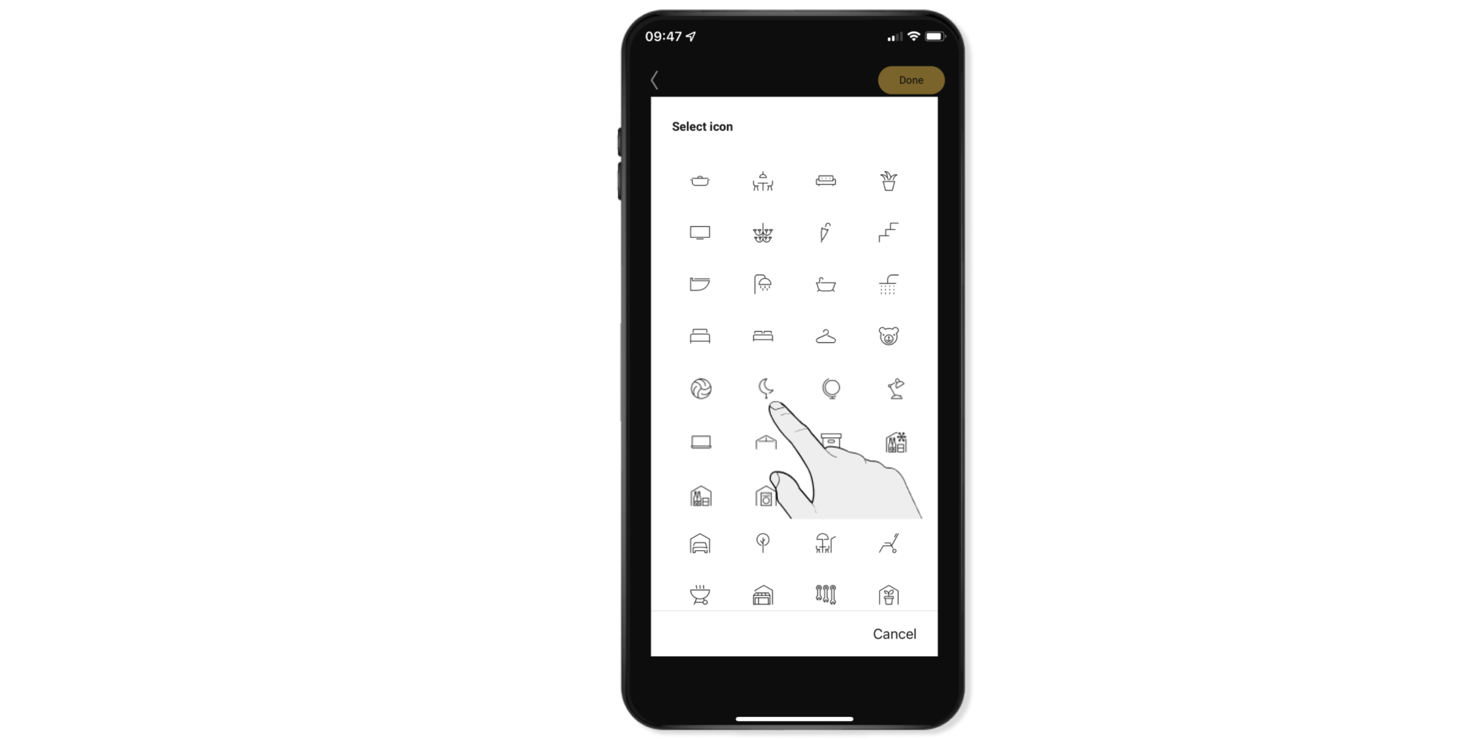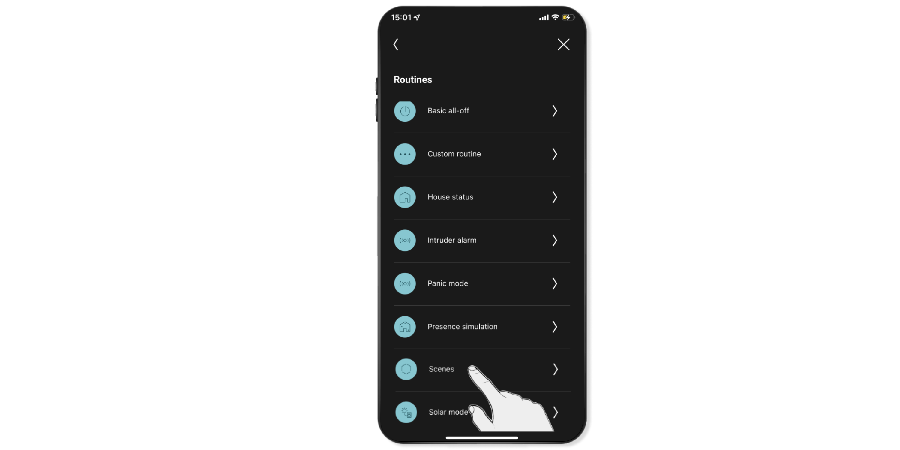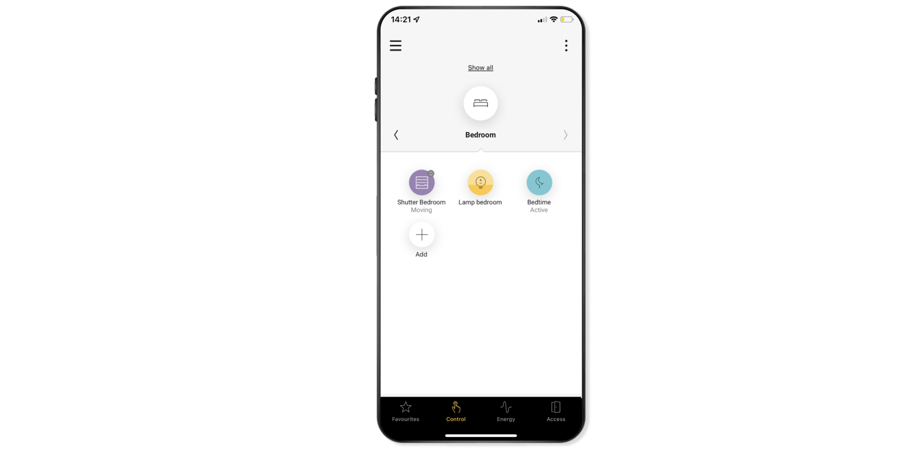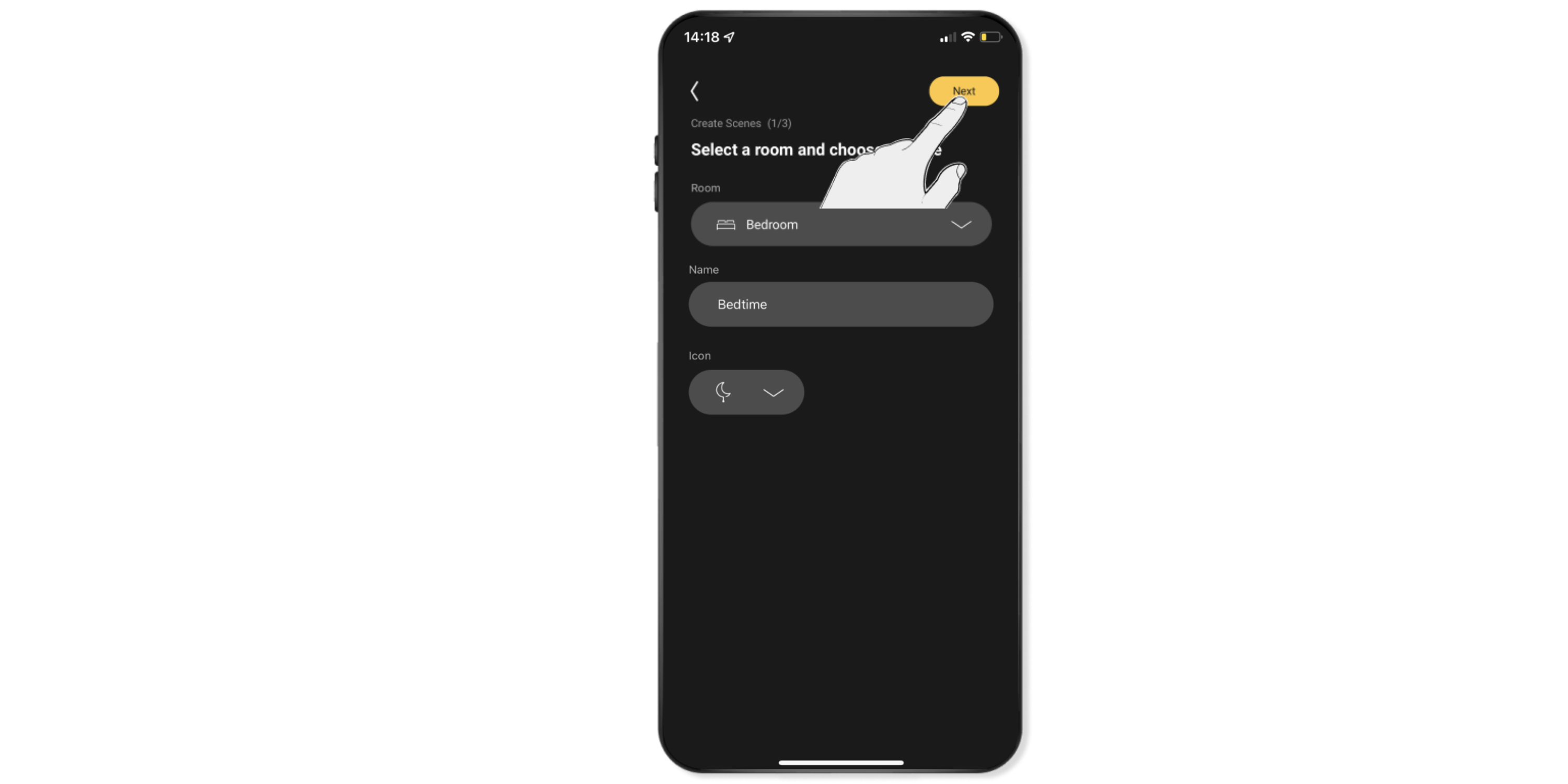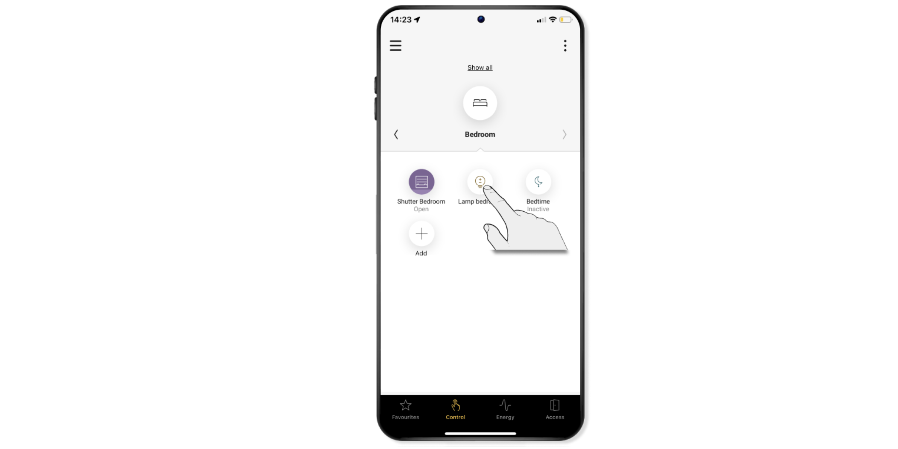 Navigeer via Bediening naar de ruimte waarin je de sfeer wilt aanmaken.