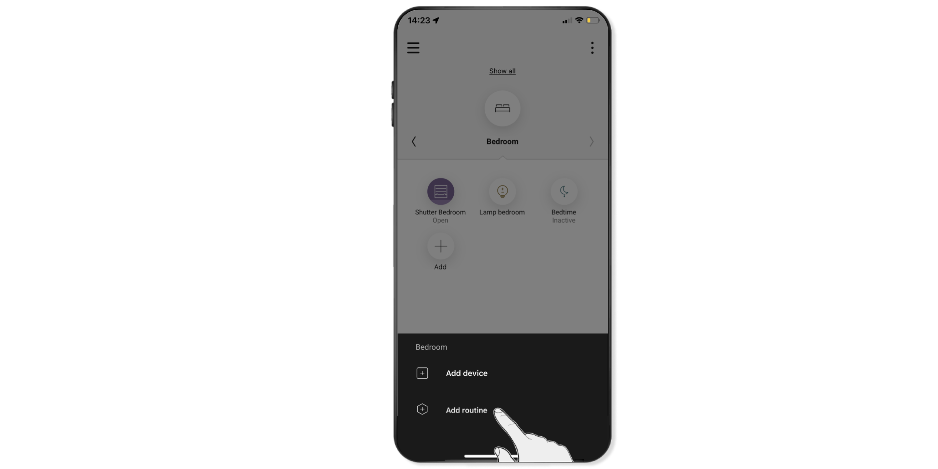 Navigeer via Bediening naar de ruimte waarin je de routine wilt aanmaken. Klik op Toevoegen en vervolgens op Routine toevoegen.