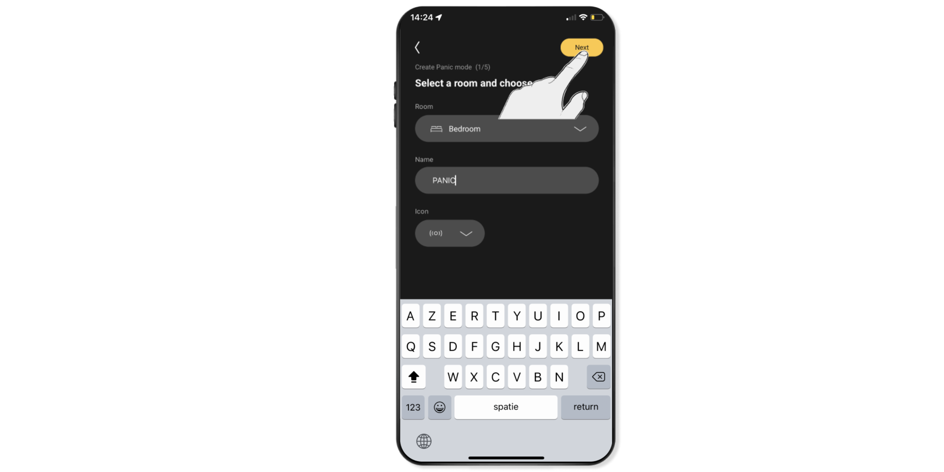 Je kunt een schakelaar kiezen waarmee je deze waarschuwingsmodus wilt bedienen of je kunt ervoor kiezen om dit enkel via de app te doen.