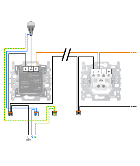 Let op: Sluit de geconnecteerde dimmer altijd rechtstreeks aan op de lamp.