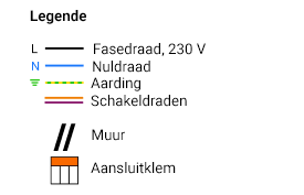Let op: De schakeling kan er in werkelijkheid anders uitzien dan op de tekening. De draden naar de lamp lopen niet altijd naar boven. Ook kunnen de fasedraad en de nulleider een andere kleur hebben. Gebruik daarom een multimeter om het aansluitschema correct in kaart te brengen.