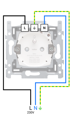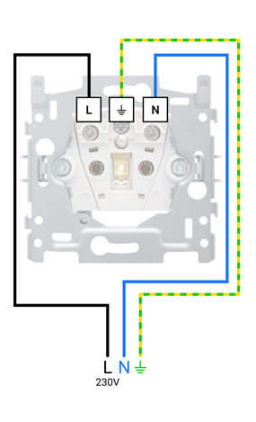 Let op: De fasedraad en de nulleider kunnen in werkelijkheid een andere kleur hebben. Gebruik daarom een multimeter om het aansluitschema correct in kaart te brengen.