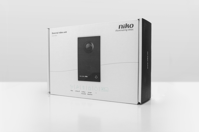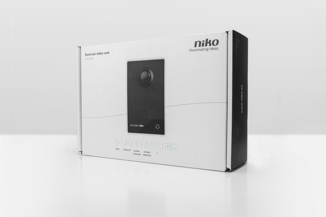 Deze videokit bestaat uit: • Videobuitenpost, tweedraads, voor opbouw, één belknop • Toegangscontrolemodule, tweedraads, met geïntegreerde voeding De kit: • vervangt een bestaande deurbel zonder nieuwe bedrading • beschikt over een HD-kleurencamera met nachtzicht • streamt live video naar je smartphone Deze compacte videobuitenpost is uitgerust met een HD-kleurencamera, microfoon en luidspreker. De infraroodleds van de camera garanderen een betere zichtbaarheid ‘s nachts (haarscherp zwart-witbeeld). Je kunt de buitenpost personaliseren met een naamplaatje (verkrijgbaar in graveerbaar plexiglas). De deursloten kunnen aangesloten worden op de toegangscontrolemodule (aanbevolen) of rechtstreeks op de videobuitenpost. Je kunt je videobuitenpost registreren via de Niko access control app (Android of iOS) om de installatie te bedienen met je smartphone. Zorg ervoor dat je toegangscontrolemodule verbonden is met je netwerkrouter om oproepen te kunnen ontvangen in de app en softwareupdates voor je installatie te krijgen. We raden aan om steeds een gong te gebruiken in combinatie met deze videokit om gemiste gesprekken omwille van een slecht bereik te vermijden. De kit is uitbreidbaar met: • Een videobuitenpost 510-31001 • Maximaal vijf videobinnenposten 510-50000