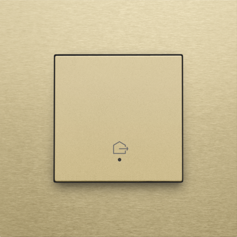 Enkelvoudige drukknop met led en comfortsensoren voor Niko Home Control, symbool 'woning verlaten', gold coated.