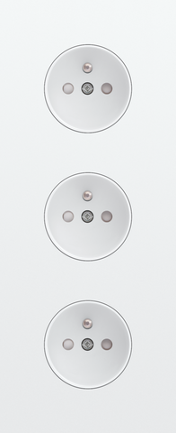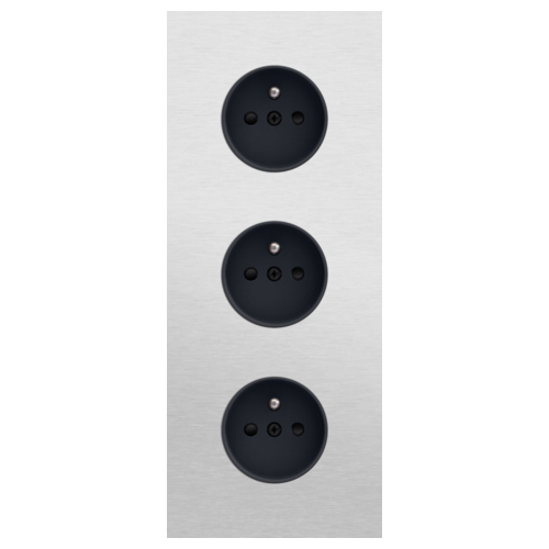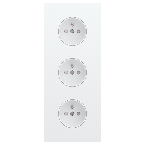 De drievoudige afdekplaat klikt op drie stopcontactfuncties die geĂ¯nstalleerd zijn met een centerafstand van 60 mm. De afdekplaat past bij elke verkrijgbare Niko Rocker en Niko Toggle afwerkingsset voor stopcontacten.