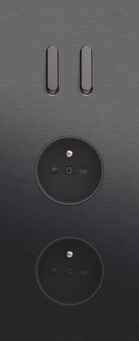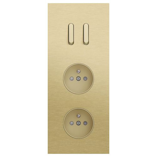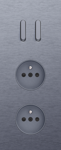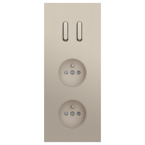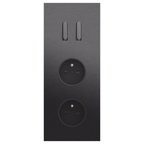 Drievoudige afdekplaat, verticaal 60 mm centerafstand, voor een tweevoudige schakelfunctie en twee stopcontacten, Niko Rocker