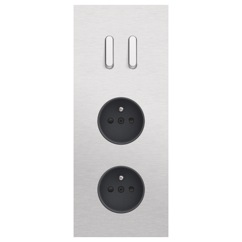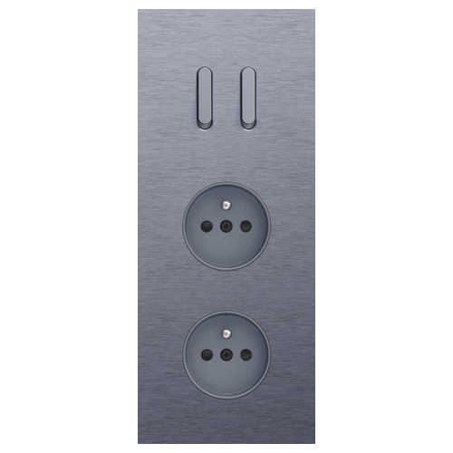 Drievoudige afdekplaat, verticaal 60 mm centerafstand, voor een tweevoudige schakelfunctie en twee stopcontacten, Niko Rocker steel white coated