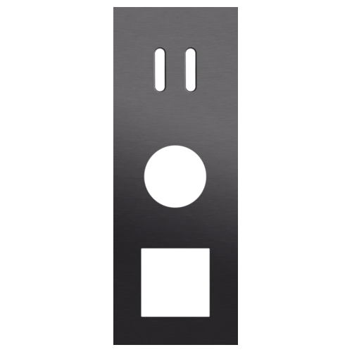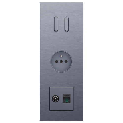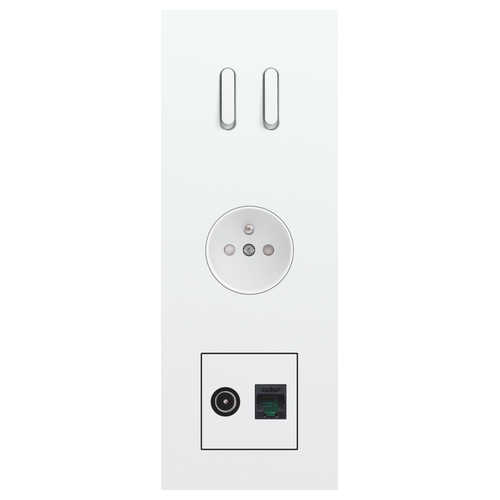 Drievoudige afdekplaat, verticaal 71 mm centerafstand, voor een tweevoudige schakelfunctie, een stopcontact en een 45 x 45 mm functie, Niko Rocker steel white coated