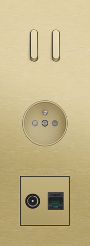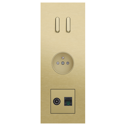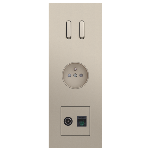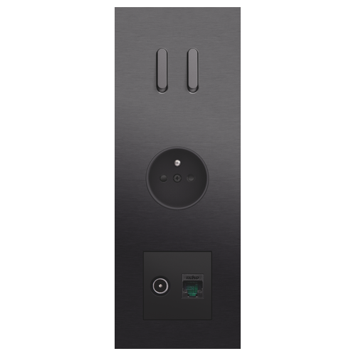 Drievoudige afdekplaat, verticaal 71 mm centerafstand, voor een tweevoudige schakelfunctie, een stopcontact en een 45 x 45 mm functie, Niko Rocker