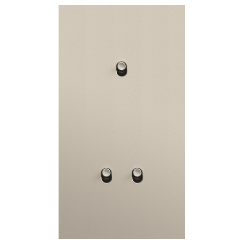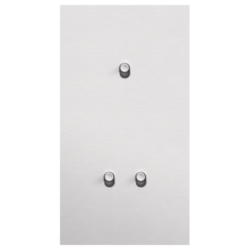 De verticale en tweevoudige Niko Toggle afdekplaat klikt op een enkelvoudige en een tweevoudige schakelfunctie die horizontaal naast elkaar zijn geplaatst met een centerafstand van 71 mm. De afdekplaat past op elke beschikbare Niko Toggle enkelvoudige en tweevoudige schakelfunctie. Ze bestaat uit een bovenkader, een lichtgeleider en een onderkader die mechanisch met elkaar verbonden zijn. Het bovenkader is vervaardigd uit staal. Het onderkader is vervaardigd uit witte polycarbonaat (PC) + acrylaat-styreen-acrylaat (ASA), white coated. Het bovenkader is 2 mm dik en het onderkader 6 mm.