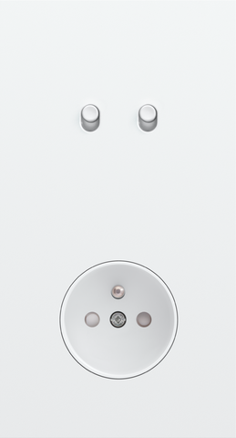 Tweevoudige afdekplaat, verticaal 71 mm centerafstand, voor een tweevoudige schakelfunctie en een stopcontact, Niko Toggle steel white coated