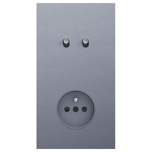 Tweevoudige afdekplaat, verticaal 71 mm centerafstand, voor een tweevoudige schakelfunctie en een stopcontact, Niko Toggle