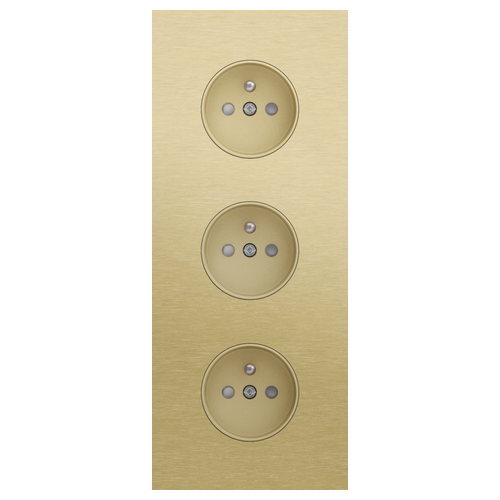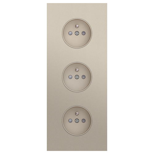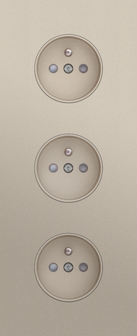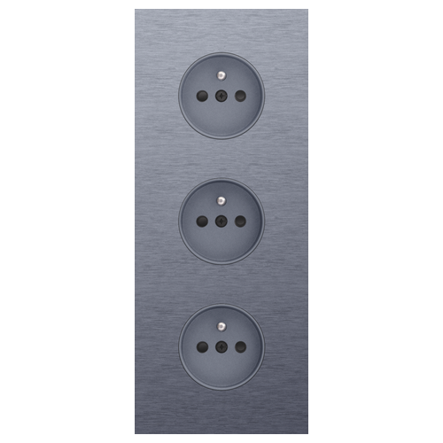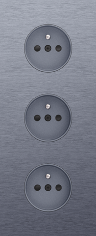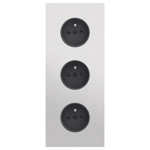 De drievoudige afdekplaat klikt op drie stopcontactfuncties die geïnstalleerd zijn met een centerafstand van 60 mm. De afdekplaat past bij elke verkrijgbare Niko Rocker en Niko Toggle afwerkingsset voor stopcontacten.