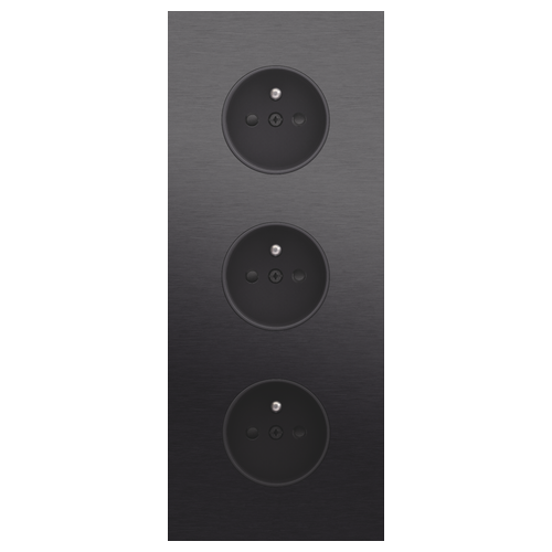 Afwerkingsset voor een stopcontact met penaarde en beschermingsafsluiters. Deze centraalplaat dient gebruikt te worden in combinatie met een stopcontact met inbouwdiepte van 28,5 mm en een afdekplaat voor een stopcontact voor Niko Rocker of Niko Toggle. De afwerkingsset heeft een zwarte schroef en zwarte beschermingsafsluiters die perfect passen bij de rest van de afwerkingsset. Afwerkingskleur: anthracite coated.