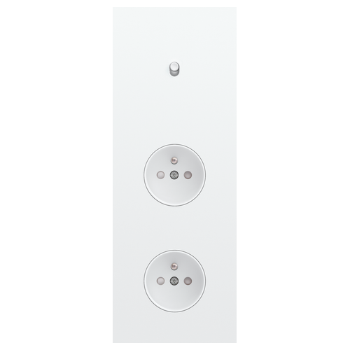 Een enkelvoudige schakelfunctie en twee stopcontacten, verticaal 71 mm centerafstand, Niko Toggle