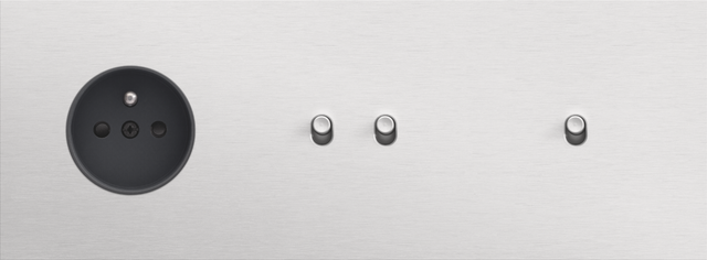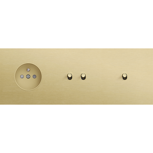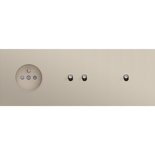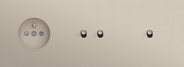 Een stopcontact, een enkelvoudige en een tweevoudige schakelfunctie, horizontaal 71 mm centerafstand, Niko Toggle