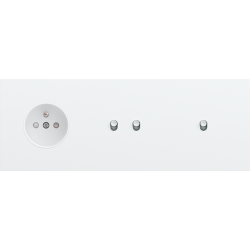 Drievoudige afdekplaat, horizontaal 71 mm centerafstand,voor een stopcontact, een tweevoudige en een enkelvoudige schakelfunctie, Niko Toggle steel white coated
