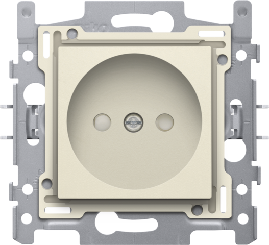 Stopcontact zonder aarding met beschermingsafsluiters, inbouwdiepte 21 mm, sokkel met schroefklemmen en afwerkingsset, klauwbevestiging, cream