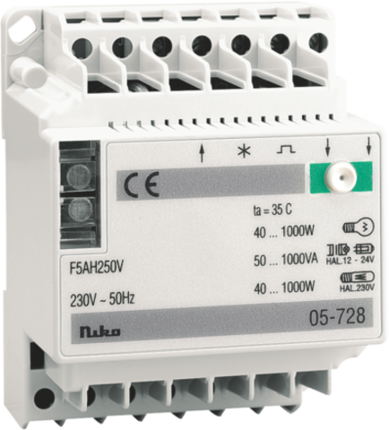 Deze modulaire dimmer 1000 VA gebruik je voor gloeilampen, halogeenlampen 230 V en laagspanningshalogeenlampen met gewikkelde transformatoren of ringkerntransformatoren. Je bedient de dimmer met een drukknop. De dimmer kan gebruikt worden met of zonder geheugenfunctie.