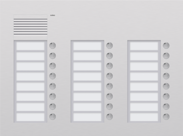 Deze ultravlakke inbouwpost is afgewerkt met 3 mm dik aluminium en kan gemakkelijk in een muur of wand ingebouwd worden. De buitenpost is voorzien van een 5 mm dikke naamplaat in plexiglas die vandaalbestendig is. De vergulde drukknopcontacten zijn onderhoudsvrij en duurzaam. Deze buitenpost werkt met een 2-draads technologie, wat betekent dat een bestaande bel eenvoudig door een dergelijke buitenpost vervangen kan worden. De buitenpost wordt geleverd inclusief inbouwdoos. Deze buitenpost heeft 24 bellen. Vanaf 12 bellen, zijn de beldrukknoppen gerangschikt in twee rijen en vanaf 24 in drie rijen.