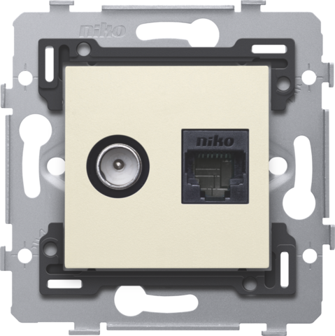 Combinatie coax met RJ45 aansluiting UTP Cat. 6A, vlakke uitvoering 71x71 en afwerkingsset, cream Ziggo geschikt