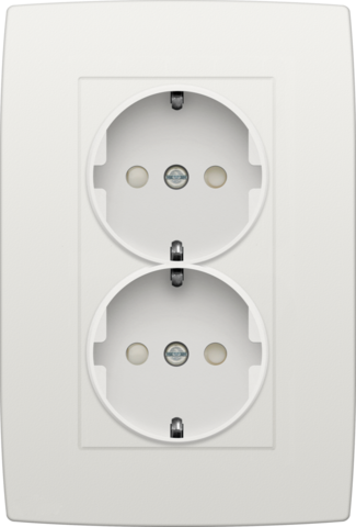 Dubbel stopcontact met randaarde en beschermingsafsluiters, verticaal, white