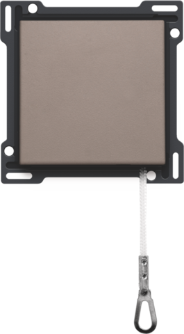 Afwerkingsset met trekmechanisme voor drukknop. Door het treksysteem wordt het lichtpunt bediend. Deze toepassing wordt meestal gebruikt in slaapkamers. Afwerkingskleur: greige.