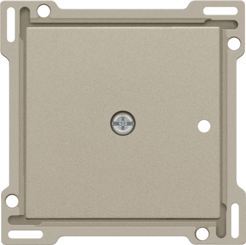 Afwerkingsset voor 1-kanaals inbouw RF-ontvanger met enkelpolig (potentiaalvrij) schakelcontact of inbouw RF-ontvanger met rolluikfunctie, champagne coated. De centraalplaat is omringd door een vlakke boord die op de 4 hoeken voorzien is van een rechthoekige opening, waarin zich telkens een multipositionele snaphaak bevindt. De opbouw van de centraalplaat zorgt ervoor dat bij onzorgvuldig pleisterwerk de afdekplaat steeds vlak tegen de muur bevestigd kan worden dankzij de snaphaken. Dit werkt in twee richtingen: als de inbouwdoos uit het pleisterwerk steekt, vangen de multipositionele snaphaken een speling tussen 1 Ã 1,2 mm op; als de inbouwdoos te diep in het pleisterwerk verzonken is, dan kunnen de snaphaken een speling tot 1,8 mm opvangen. De vlakke boord rondom de centraalplaat bevat eveneens 4 ronde openingen die ervoor zorgen dat de afdekplaat correct gepositioneerd kan worden ten opzichte van de centraalplaat. Na montage van het geheel (afdekplaat, afwerkingsset en mechanisme) zijn er, dankzij de vlakke boord aan de centraalplaat, geen metalen delen zichtbaar.