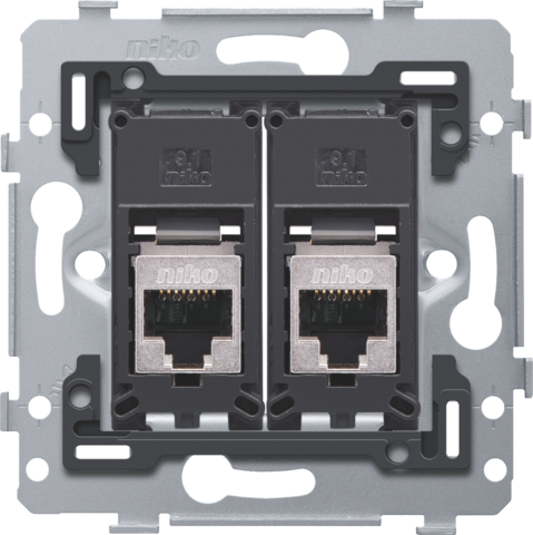 2 RJ45-aansluitingen STP Cat. 6A, vlakke uitvoering, incl. sokkel 71 x 71 mm met schroefbevestiging