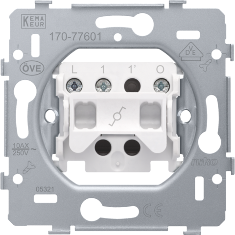Sokkel voor wisselcontroleschakelaar met 4 aansluitklemmen, 10 AX/250 Vac, schroefklemmen
