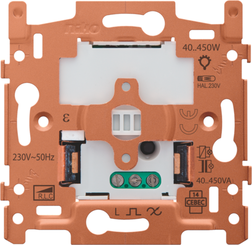 Sokkel voor een universele drukknopdimmer met een vermogen van 450 VA. Een afwerkingsset XXX-31001 in een kleur naar keuze moeten afzonderlijk besteld worden.