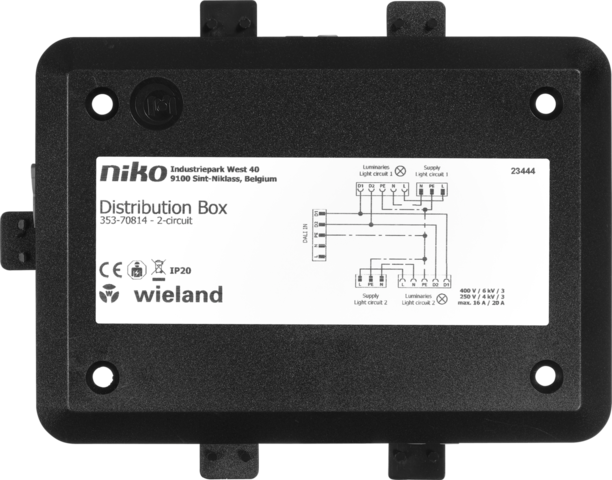 Deze verdeelkast kan gebruikt worden met verdeelkasten 353-70801, 353-70802 en 353-70803 of met een DALI-2-BMS-systeem om de stroomverdeling naar de DALI-verlichtingsarmaturen over twee vermogensschakelaars te verdelen en zo een hogere stroomzekerheid te garanderen. Externe connectoren voor beide voedingscircuits zijn inbegrepen. Elke connector is uniek, wat helpt om fouten tijdens de installatie te vermijden, verbindingen nauwkeuriger te maken en tijd te besparen.
