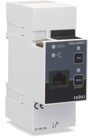 Dit is de centrale regeleenheid van het systeem. Per installatie is één controller nodig om het systeem te programmeren. Met één druk op de testknop controleer je de werking en de status van de modules. Met de programmeerknop programmeer je de basisfuncties zoals bv. licht en rolluiken zonder dat je hiervoor een pc nodig hebt. Alle instellingen worden in deze module opgeslagen. De controller wordt geleverd met een installatie- en gebruikershandleiding.