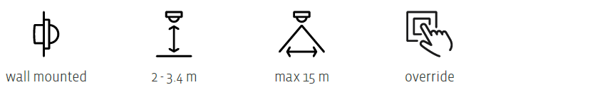 De detectoren schakelen de verlichting automatisch aan wanneer een van de detectoren activiteit detecteert in het detectiegebied en het luxniveau lager dan het ingestelde niveau is. De verlichting wordt automatisch uitgeschakeld na een ingestelde tijdsperiode. In elk centrum kan aan de oplossing een drukknop worden toegevoegd om enkel de verlichting in te schakelen.