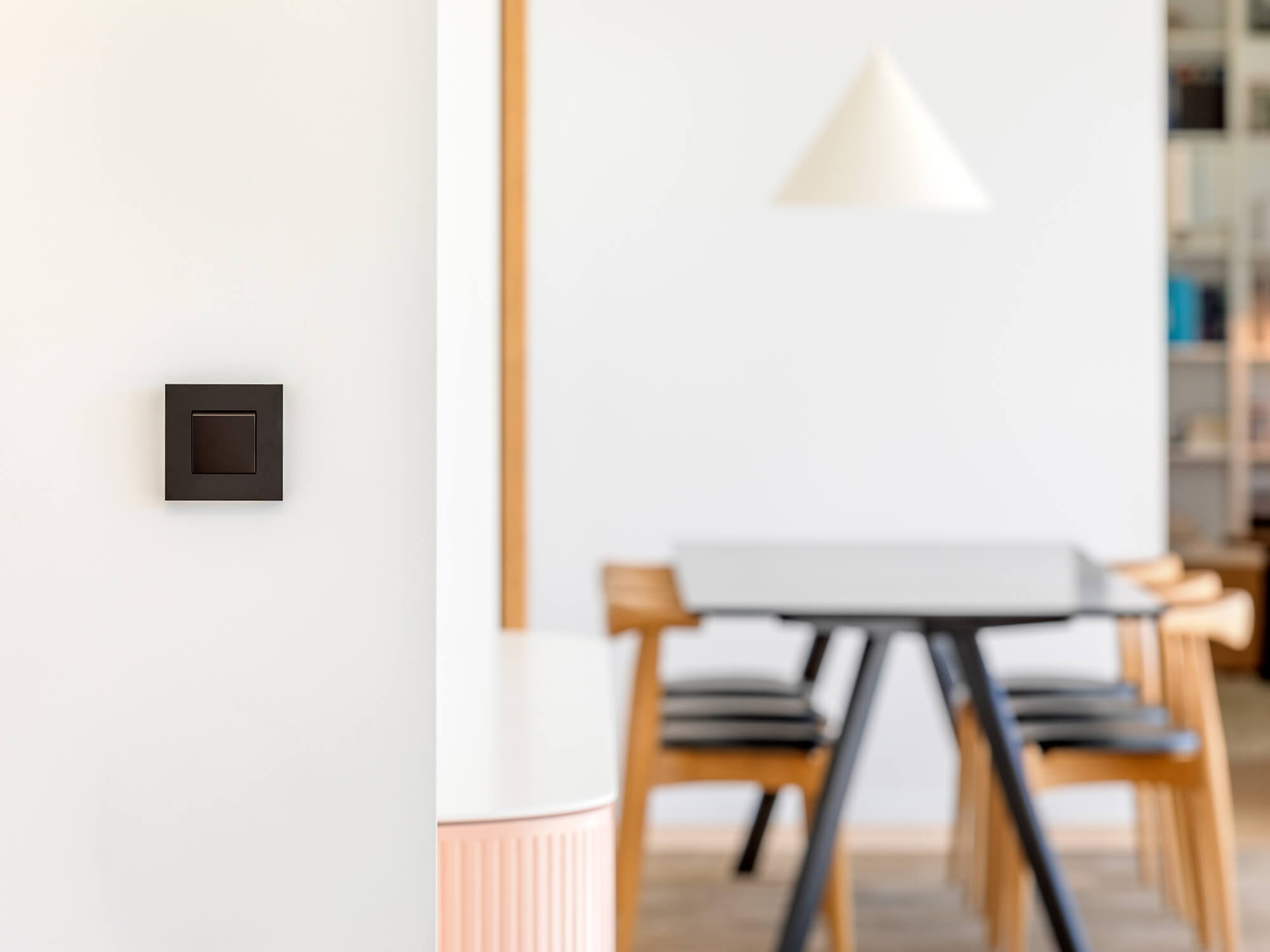 Met de uitgepuurde vormen en verfijnde details van ons schakelmateriaal maak je altijd en overal een designstatement.