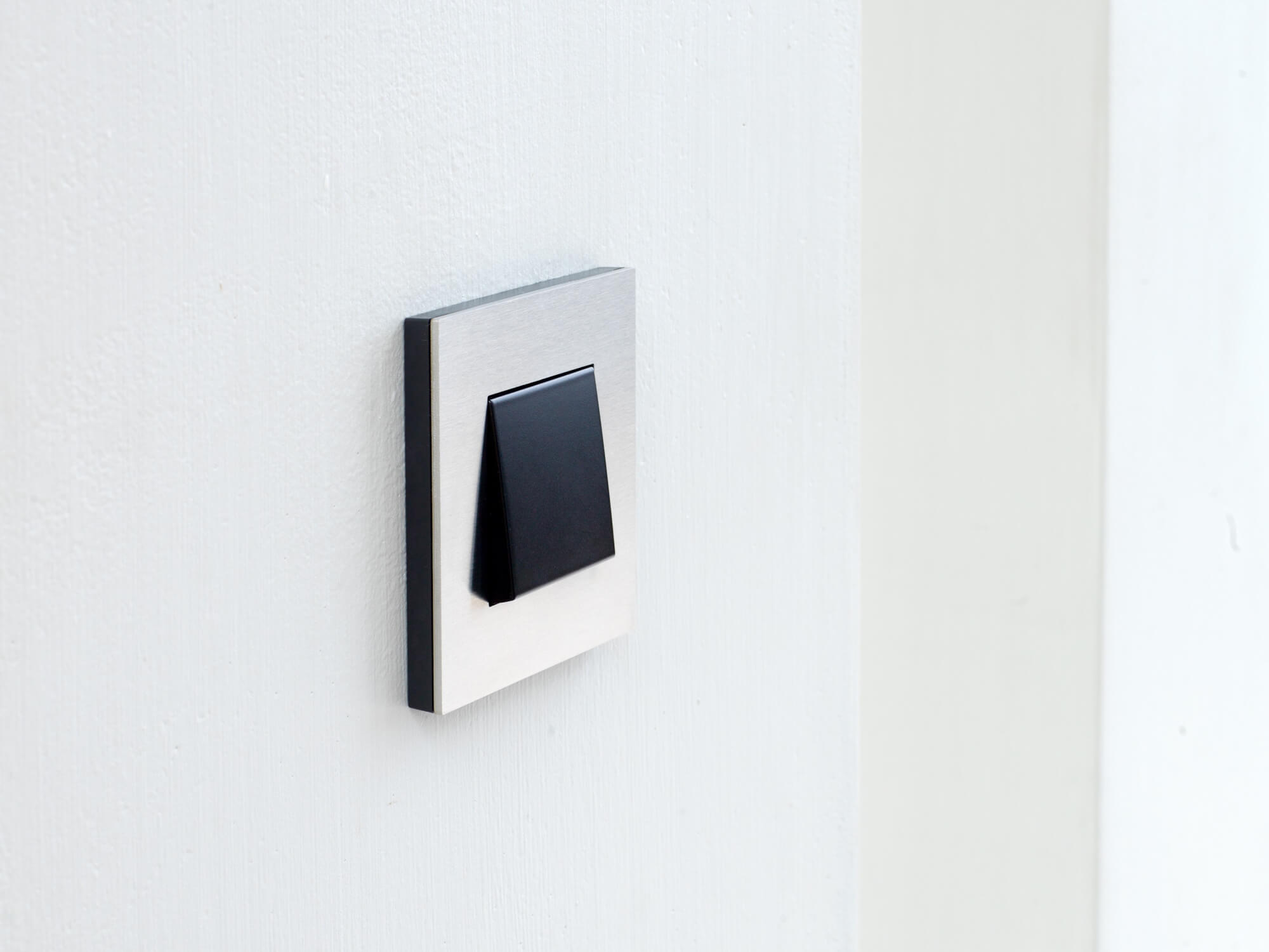 Niko Pure stainless steel is een afdekplaat in puur roestvrij staal op een anthracite onderkader.