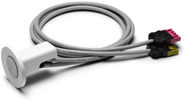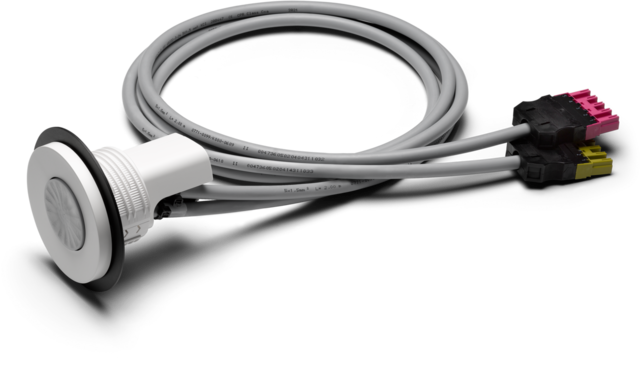 Aanwezigheidsmelder P48MR, DALI-2, master, 12-13 m, voor inbouw (SnapFit), WAGO WINSTA® MIDI 2 x 2 m kabel met 5 polige connectors, wit.
