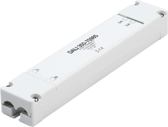 Deze compacte voeding levert voeding aan de DALI-bus en aan de aangesloten sturingen. De voeding kan ofwel in de armatuur zelf ingebouwd worden, ofwel op het verlaagde plafond geplaatst worden. De maximale belasting bedraagt 250 mA.