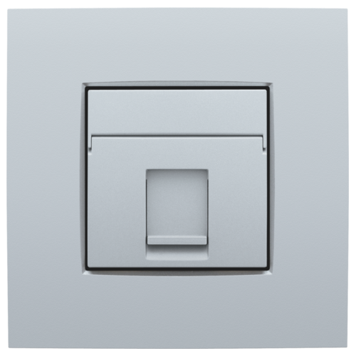 1 RJ11-aansluiting UTP, vlakke uitvoering, incl. inbouwraam 71 x 71 mm met schroefbevestiging.