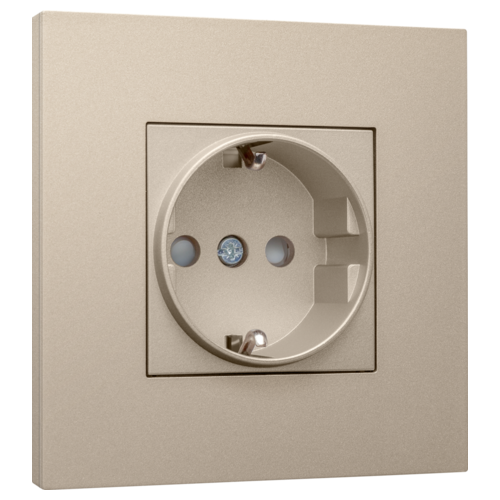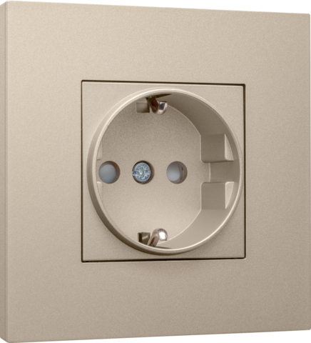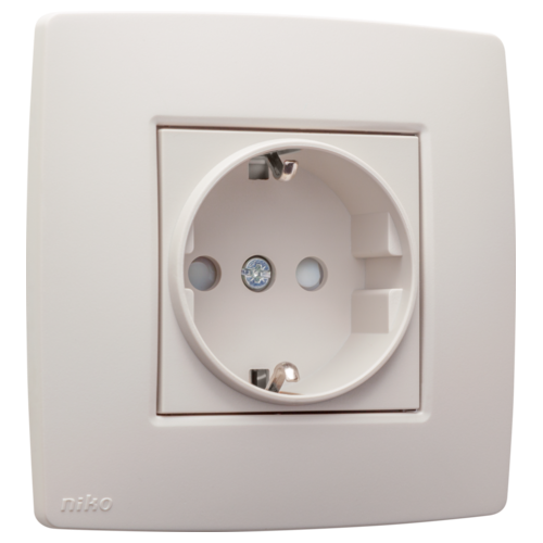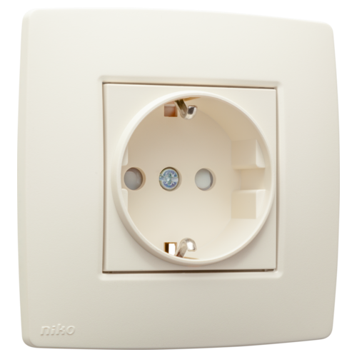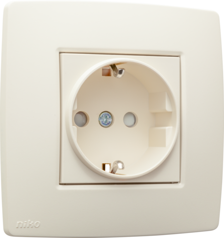 Stopcontact 71 x 71 mm met randaarde en insteekklemmen, sokkel en afwerkingsset, schroefbevestiging, cream