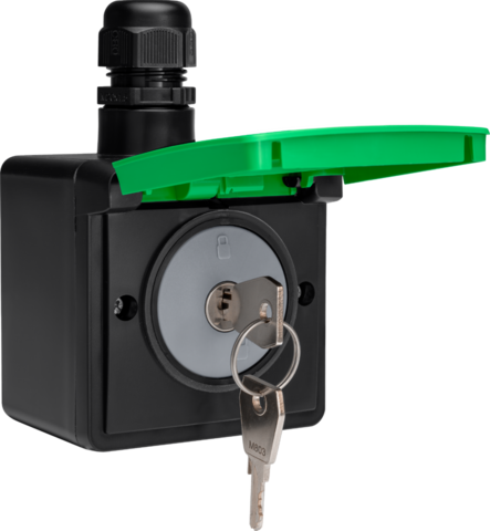 Dit spuitwaterdichte opbouwstopcontact is voorzien van randaarde, beschermingsafsluiters, insteekklemmen en een slot met twee unieke sleutels. Het vormt een veilige en weersbestendige oplossing voor buitenomgevingen waar de gecontroleerde toegang tot elektriciteit belangrijk is, zoals openbare ruimtes, gedeelde tuinen, garages of professionele omgevingen. Elk slot wordt geleverd met twee unieke sleutels waardoor elk stopcontact afzonderlijk kan worden vergrendeld en bediend.