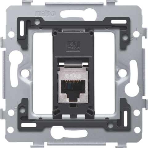 Ten mechanizm z 1 punktem przyłączeniowym RJ45 STP Kat. 6, służy do utworzenia połączenia sieciowego z 1 urządzeniem do zastosowań telefonicznych, ethernetowych, IP lub internetowych. Ze względu na wysoką jakość ten typ oferuje również możliwość przesyłania sygnałów telewizyjnych dla obrazów analogowych, cyfrowych i interaktywnych obrazów telewizyjnych. Mechanizm jest podłączony w konfiguracji gwiazdy do centralnej szafki przyłączeniowej za pomocą kabla o takim samym typie wydajności. Ekranowanie zapewnia połączenie bardziej odporne na awarie. Ramka do montażu podtynkowego ma wymiary wewnętrzne 45 x 45 mm i wymiary zewnętrzne 71 x 71 mm i jest mocowana za pomocą mocowanie za mocowanie śrubowe. Zestaw wykończeniowy i ramkę zewnętrzną w wybranym kolorze należy zamówić osobno.