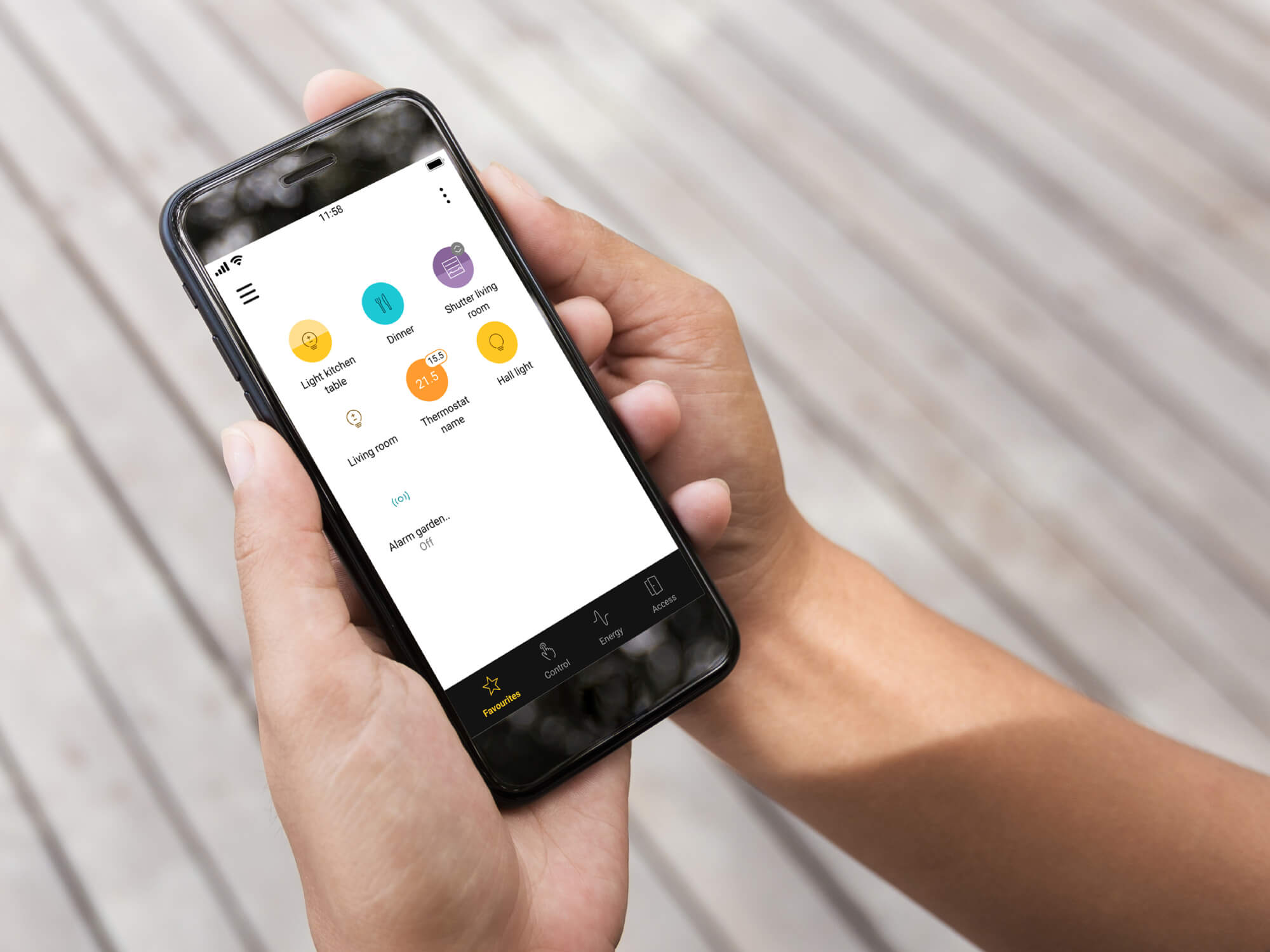 Aplikacja Niko Home zapewnia pełną kontrolę nad domem. Możesz jej używać do obsługi wszystkich funkcji w domu, jak oświetlenie, podłączone urządzenia, ogrzewanie, rutynowe procedury, a nawet dostęp do drzwi wejściowych lub bramy.