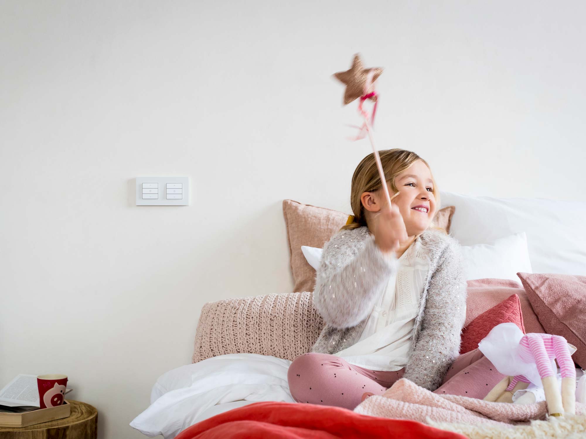 Niko Home Control ze sterowaniem głosowym oszczędza zarówno Twój czas, jak i zdrowie psychiczne. Wystarczy powiedzieć słowo, a rolety w pokoju dzieci otworzą się, a ich ulubione utwory zaczną grać automatycznie. Dzięki temu masz wolne ręce, żeby przygotować śniadanie, które zwabi je do stołu!
