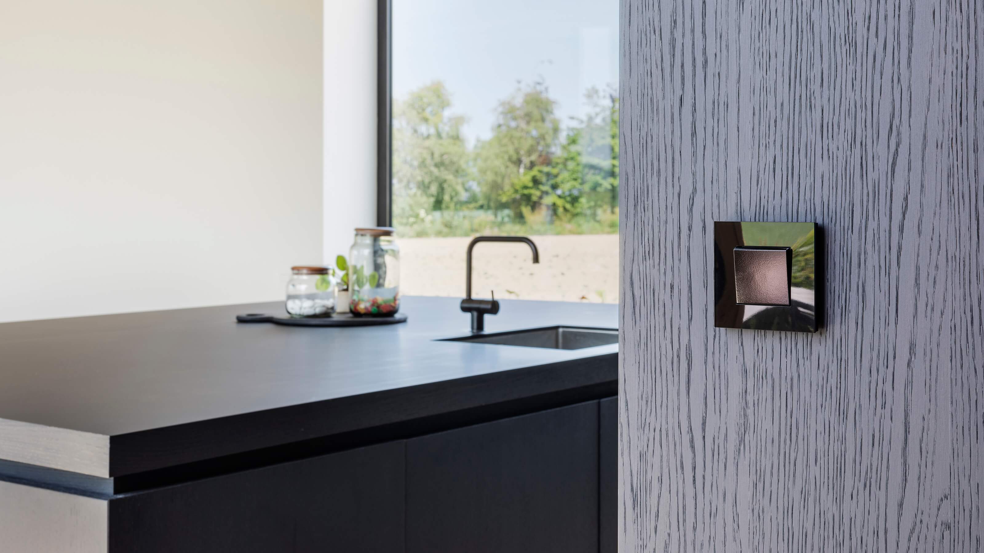 The endless deep black lustre of this contemporary switch with a cool look is at its best in a sleek home full of technological gadgets.