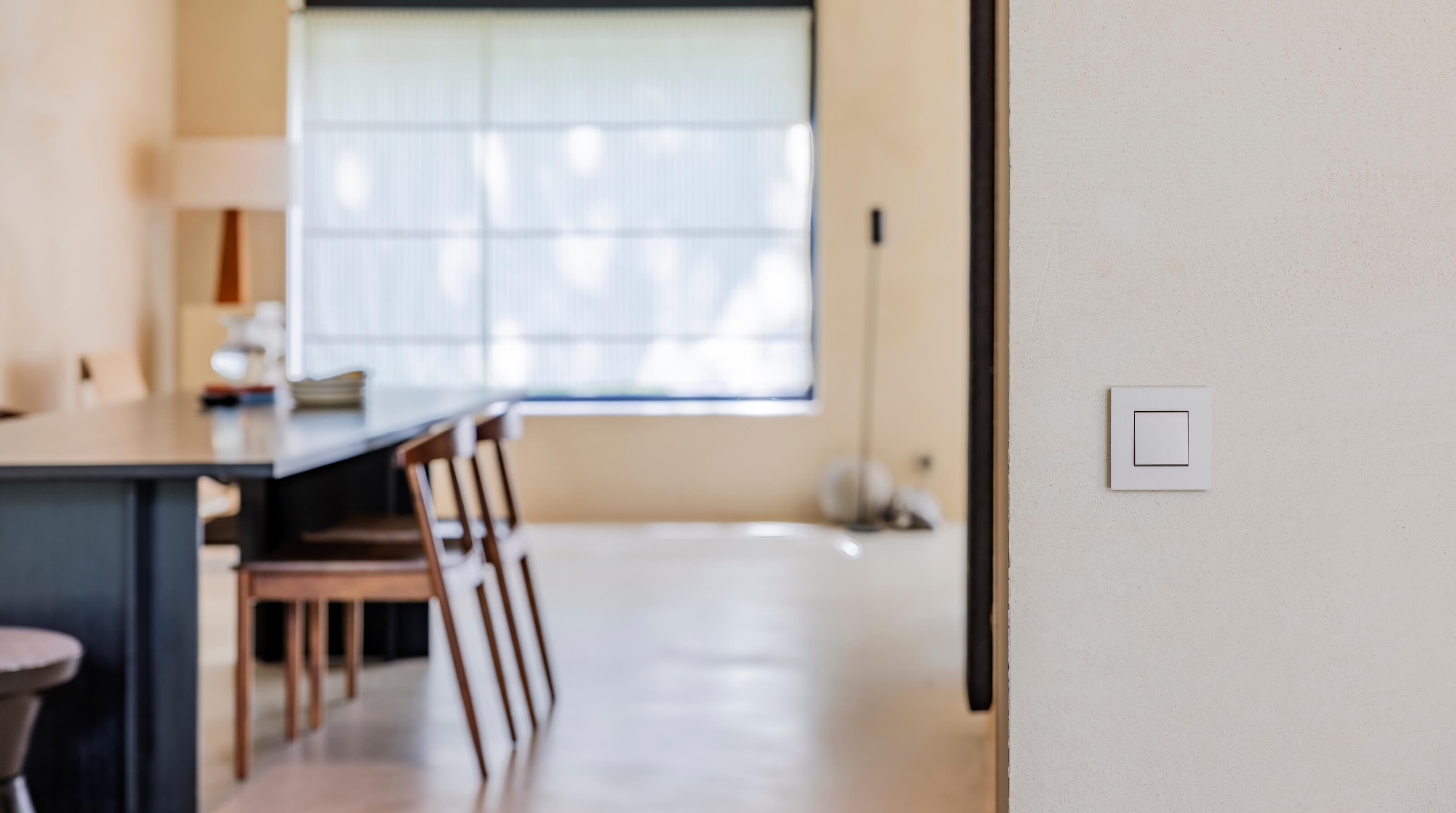 “Our switches and socket outlets needed to blend into the interior, while at the same time standing out. The light champagne shine of the Niko Pure steel champagne coated switches provides a stylish finishing that is a great contrast to the robust and natural look of gypsum plaster.